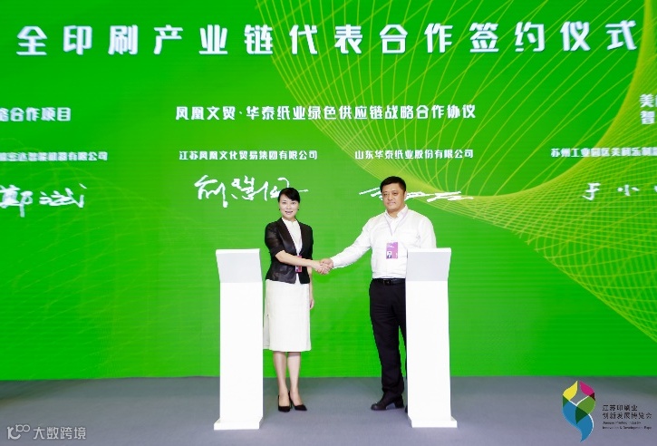 此次印博会,文贸集团携手华泰、北人、万力、牡丹等战略合作伙伴一同亮相。开幕式上,文贸集团与山东华泰纸业股份有限公司签订了绿色供应链战略合作协议,为实现双方资源共享、优势互补,优化服务出版绿色供应链夯实基础、筑牢根基。