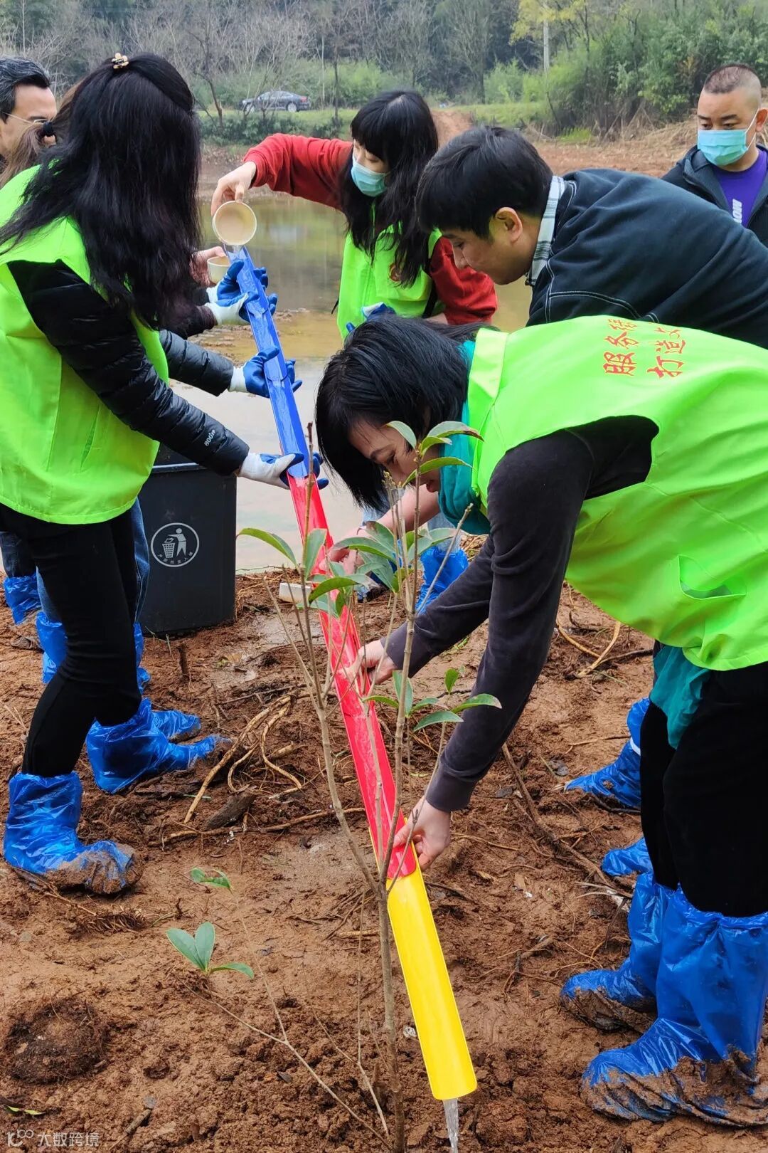 大家精神饱满,热情高涨,有的挥锹挖坑,有的扶苗栽种,有的引水灌溉……认真完成每一道工序,精心种下一棵棵树苗,全程分工明确,默契配合,衔接有序,忙而不乱。经过数个小时的辛勤劳动,新栽的45株幼苗迎风而立,传递着春的生机与活力,更表达着对文贸集团成立45周年的美好祝福与期待。