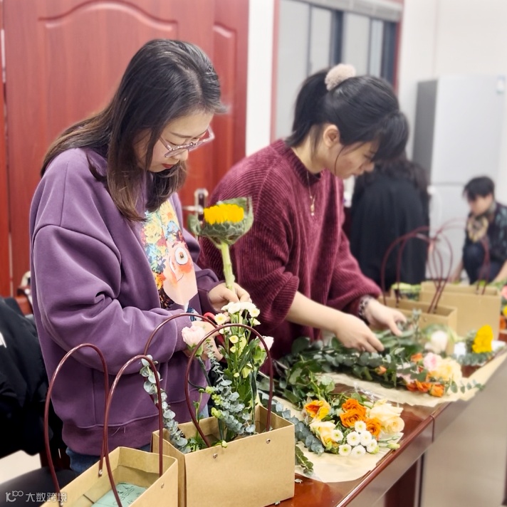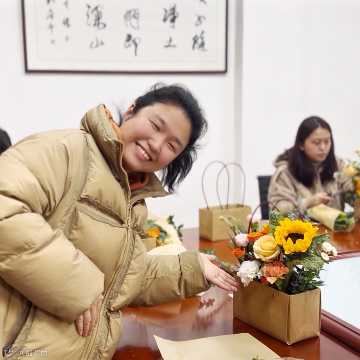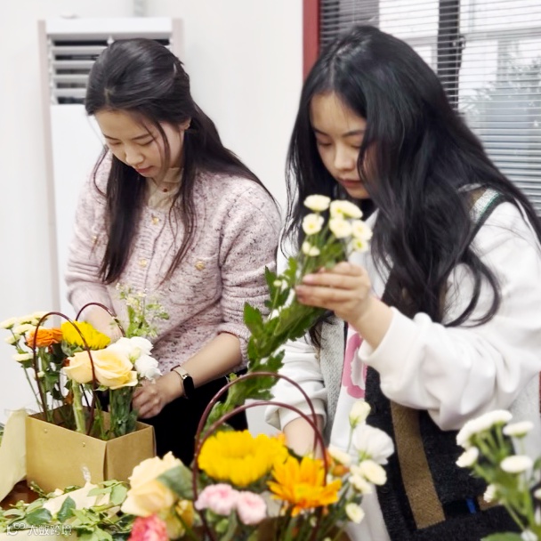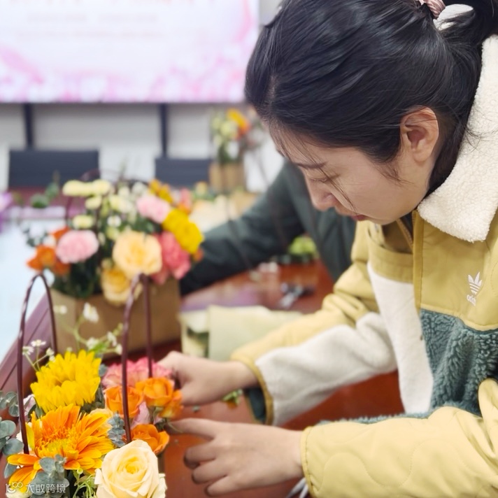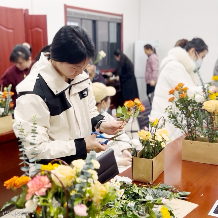 在品尝完茶韵茶香后,大家纷纷展示起了插花手艺。结合各种花卉的特点与搭配技巧,“女神们”发挥创意,将花朵、枝叶巧妙地组合在一起,创作出独具特色的花艺作品。在插花的过程中,大家或低头沉思,或相互交流,或细心修剪,每一个动作都释放了女性的优雅与温柔。