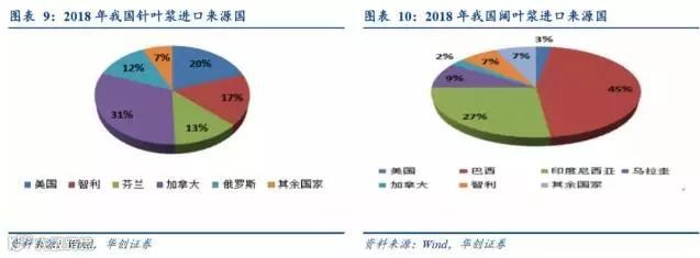 2019年6月,我国将对来自美国的木浆、废纸浆、成品纸加征关税,其中基本涵盖所有进口木浆种类,主要纸浆品种化学针叶浆、化学阔叶浆均加征关税5%,源自美国的针叶浆占比约为20%,阔叶浆约为2.7%,对于美国木浆加税总体影响可控,小幅抬升木浆进口成本,海外木浆生产布局成为重要成本优势。对废纸浆加征20%关税,随着我国废纸进口政策趋严,在海外将废纸制成废纸浆进口成为一种技术可能,随着对美国废纸浆加税,其他国家海外基地之作废纸浆的价值愈加凸显。