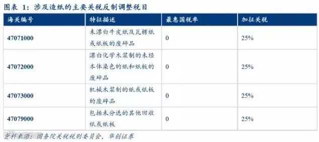 1、废纸:2018年8月加征关税涵盖所有品种,加征关税税额为25%