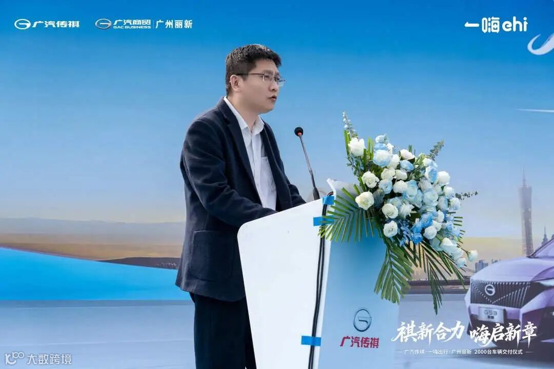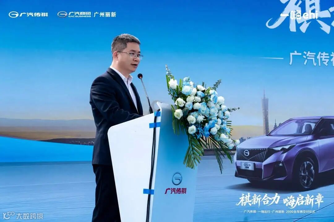 致辞环节,各方领导共绘合作蓝图。传祺 BU 副总裁王彧表示,2000 台车辆的批量交付,既是广汽传祺深耕出行市场的坚实里程碑,更是对 “为亲人造好车,让出行更美好” 品牌使命的生动践行;广州丽新总经理石小磊承诺,将发挥资产运营专长,构建 “车辆采购 - 运营管理 - 残值处置” 全周期金融服务闭环,为跨界合作注入可持续动能;一嗨租车相关负责人坦言,此次深度绑定源于对传祺卓越产品力与前瞻品牌理念的高度认可,未来将携手伙伴持续革新出行服务体验。
