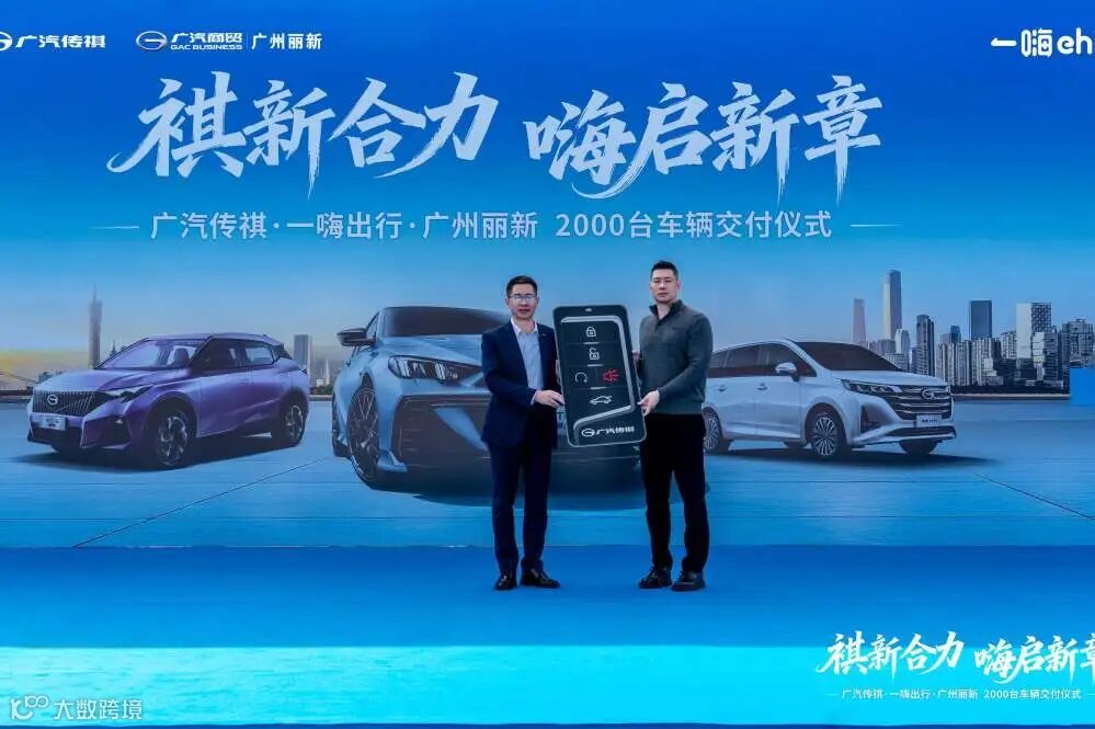 春启新章,聚力同行!2026 年 2 月 5 日,广州传祺发车中心流光溢彩、氛围炽烈,“祺新协力 嗨启新章”广汽传祺&一嗨出行&广州丽新 2000台车辆交付盛典在广州传祺发车中心盛大启幕。传祺BU副总裁王彧、一嗨出行副总裁唐宇钧、一嗨出行汽车金融部总监熊伟、广汽商贸副总经理王鑫、广州丽新总经理石小磊、广汽集团政企客户中心负责人李永峰等出席仪式,共同见证这场赋能智慧出行的重要里程碑盛事。