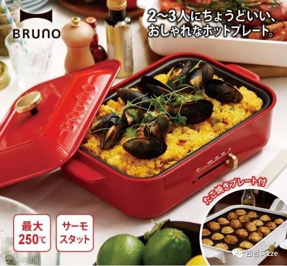 BRUNO多功能电烤盘采用铸铁盘,号称是环保无烟害的电烤盘,可以轻松完成许多料理,像是烤肉、什锦烧、松饼、章鱼烧、海鲜饭等等,需要的话还可以加买陶瓷白深锅,用于煮火锅、寿喜烧,非常方便呢!!