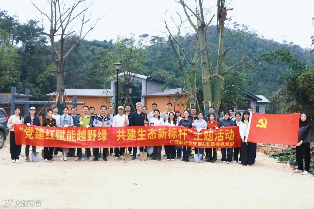 广西商贸&五菱柳机双方围绕绿色发展与党建共建进行交流互动,并共同栽种友谊树。