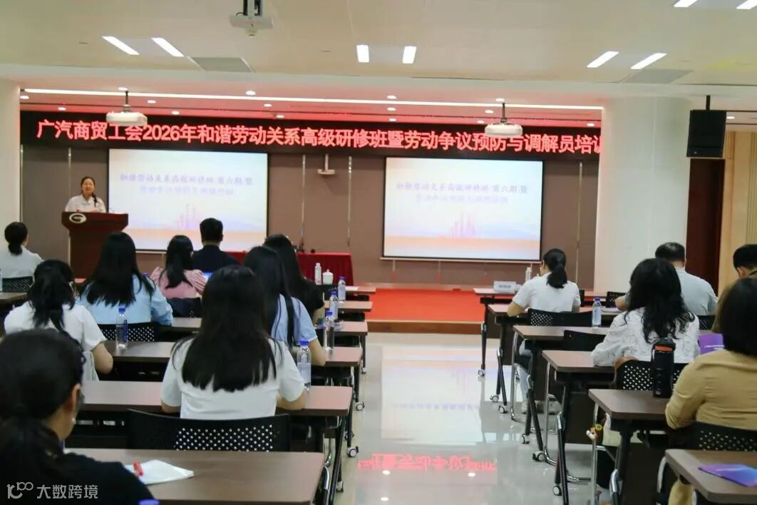 为进一步提升各企业劳动争议预防、调解与协商能力,切实维护职工合法权益,促进企业合规发展,推动构建和谐稳定的劳动关系,广汽商贸工会于4月14日开展2026年和谐劳动关系高级研修班暨劳动争议预防与调解员培训。广汽商贸本部及各投资企业工会专兼职干部,以及企业内从事劳动争议预防与调解工作的相关行政岗位人员合计50人参加本次培训。