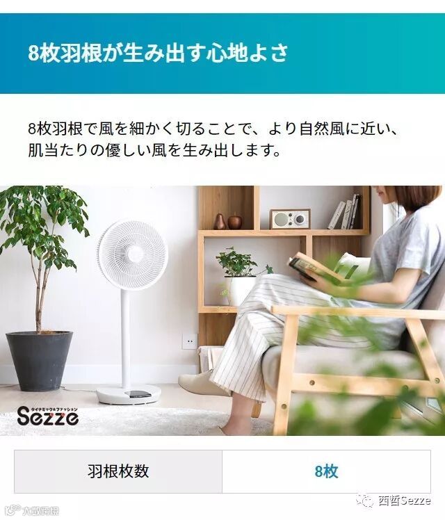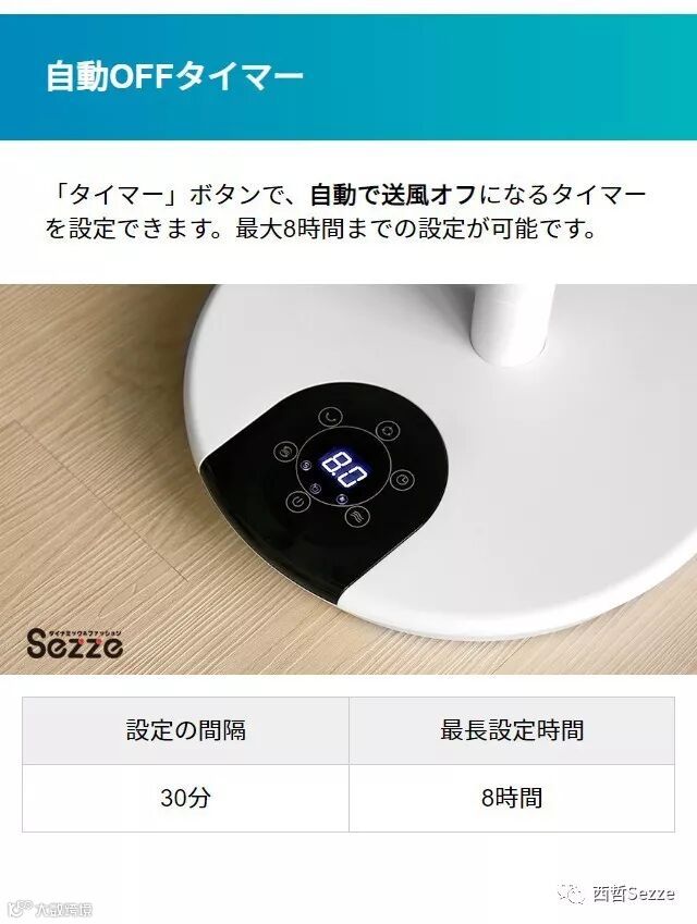 Sezze DCモーター 8枚羽根 リモコン付き リビング扇風機 360°首振り 自動首振り 自動OFFタイマー 静音 省エネ