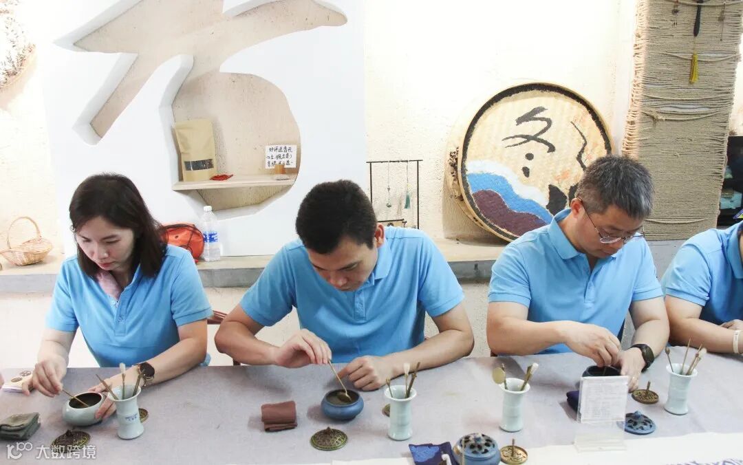 全体员工现场破冰分为四个小组,每个小组推选出一位小组长,组员们快速共同为小组取名和想一个响亮的口号,开始今天的寻香减压之旅。