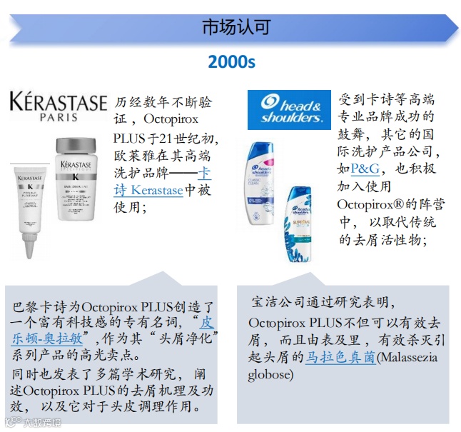 OCTOPIROX PLUS(吡罗克酮乙醇胺盐),来自科莱恩的首创单体,1980年代合成,1990年代取得全球专利,是欧莱雅、海飞丝等头部品牌的核心去屑活性物。