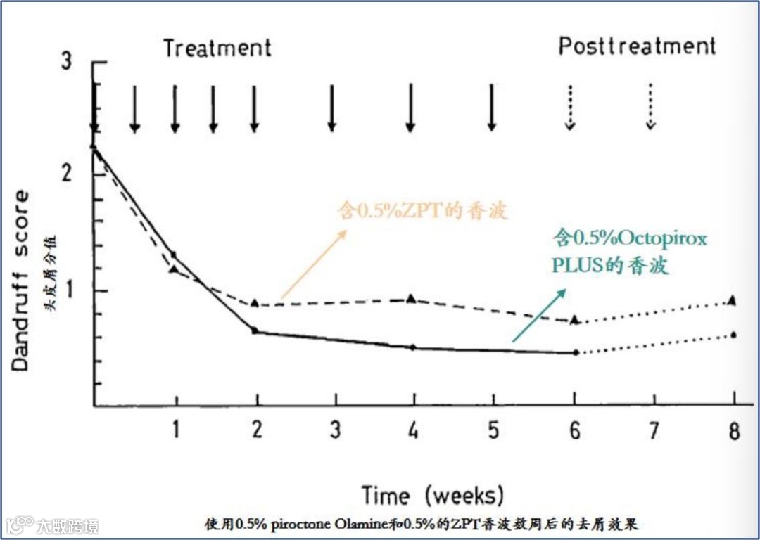▶ 仅使用6次含Octopirox PLUS的香波,头屑减少>80%,效果持久且优于ZPT▼