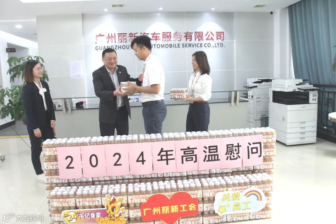 2024年7月9日,广汽商贸副总经理、广州丽新董事长陈良忠一行到基层开展高温慰问,为广州丽新员工送来清凉和关爱。广汽商贸工会副主席郭晓璐、广汽商贸安保部总监粟晗、广州丽新总经理石小磊、副总经理陈叔明等人参加。