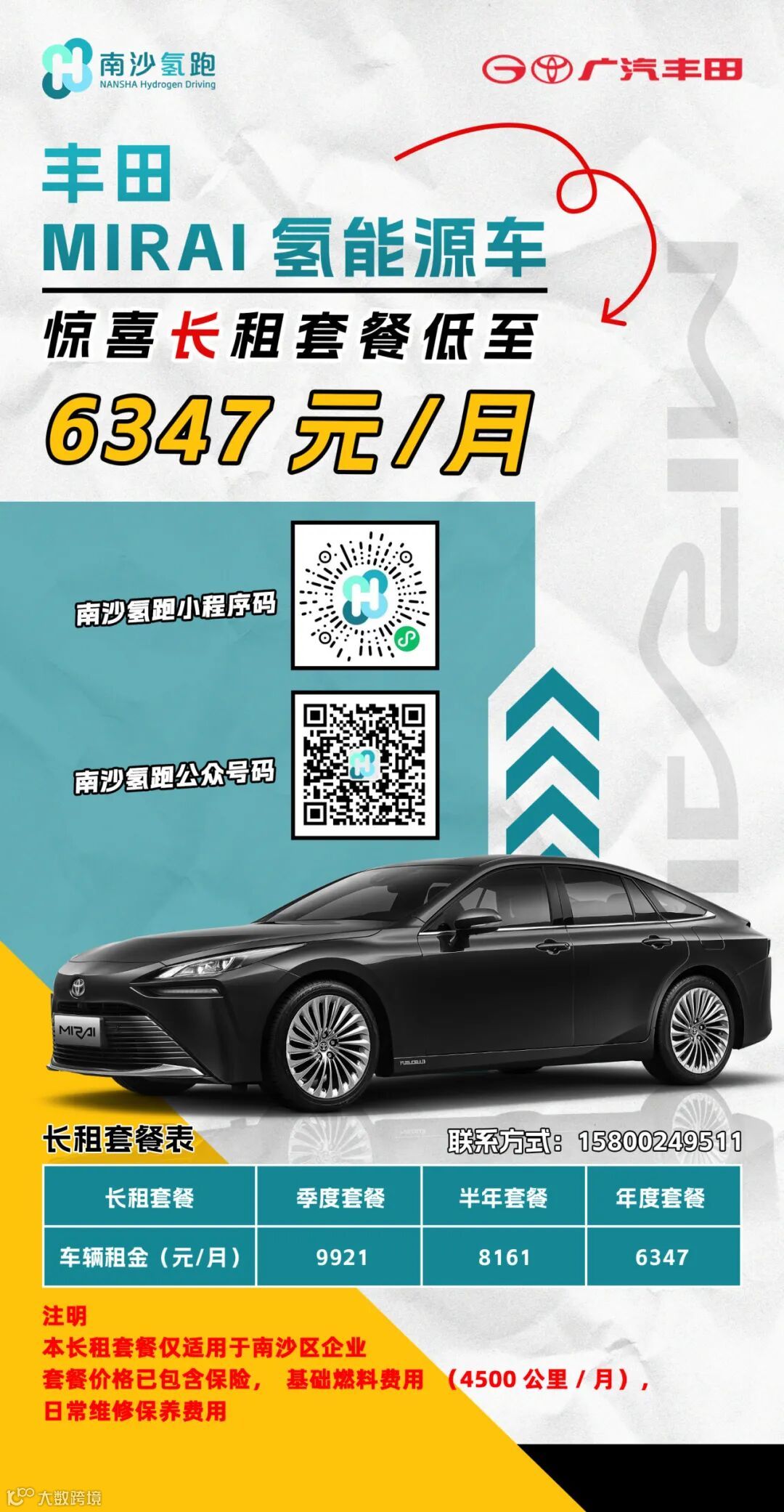 数量有限,先到先得!请尽快联系我们(15800249511),预约您的丰田MIRAI氢能源车长租套餐。我们期待与您携手共创绿色出行新未来!