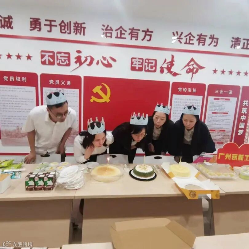 下午3点,来自不同部门、不同岗位的寿星们陆续到场,生日会正式开始。首先,广州丽新党支部书记、总经理石小磊,工会主席李颖到场为大家送上生日祝福,随后,现场一同唱起了生日快乐歌,寿星们共同许下美好的愿望,把美味的蛋糕分发给在场的员工们,大家开始享用丰盛的下午茶。