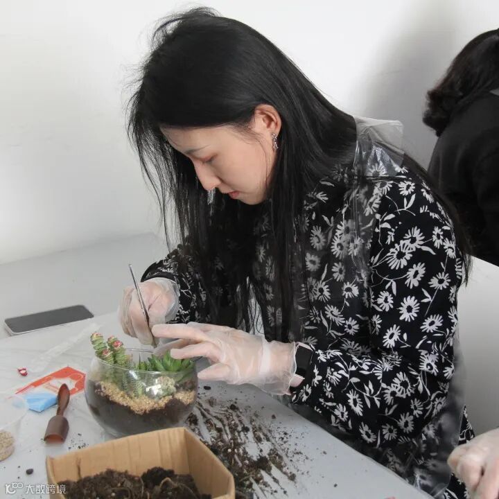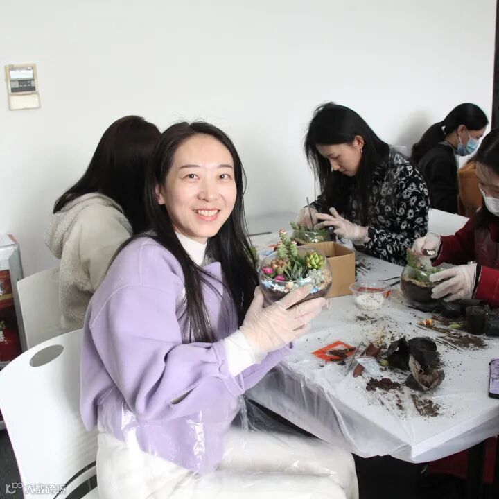 3月8日上午开展女职工特色课程培训活动——多肉微型景观 DIY 活动,共27名女职工参加。