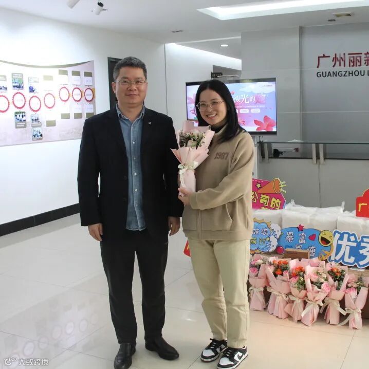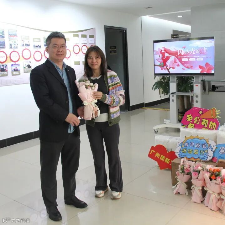 广州丽新总经理石小磊在三八节当天为27名女职工献花,以表达对节日美好的祝福,祝广州丽新全体女职工妇女节快乐。