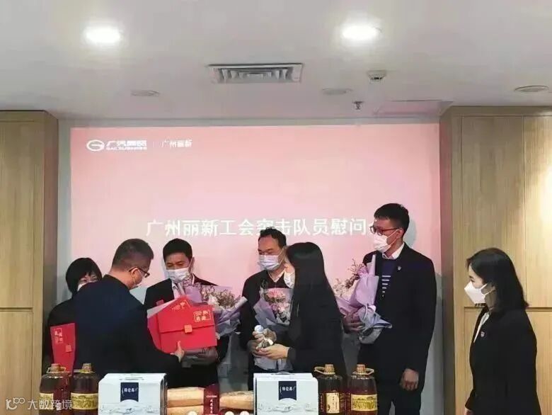 2023年1月9日,广州丽新汽车服务有限公司(以下简称广州丽新)工会举行突击队员慰问座谈会。公司总经理石小磊、副总经理陈叔明、工会主席李颖及在2022年10月份以来参与疫情防控支援4名突击队员参加会议。