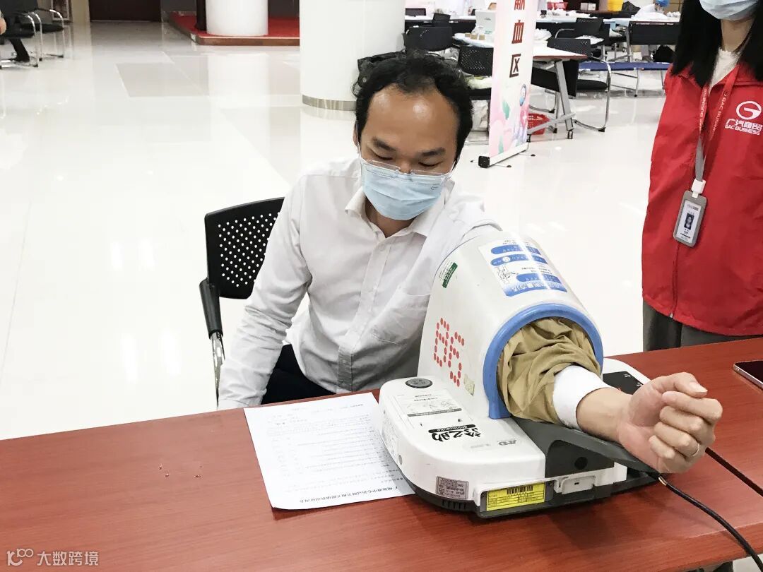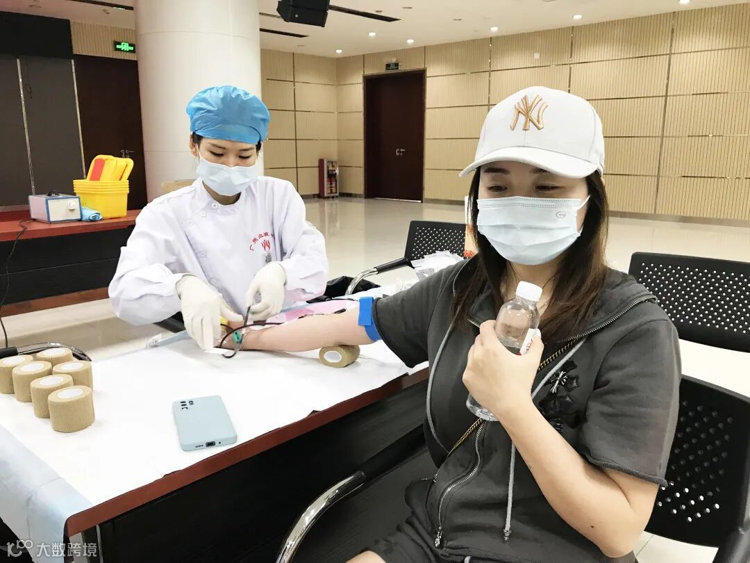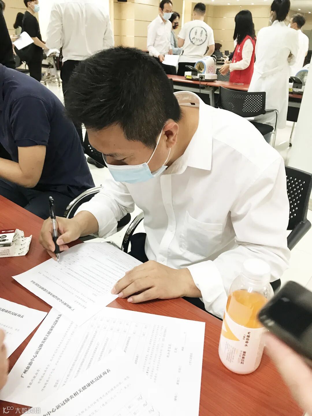 3月16日下午,广州丽新8名献血志愿者来到圣丰广场5楼,与广汽商贸其他献血志愿者一起有序地排起长队,依次进行信息登记、血液类型检验、静脉采血等环节。