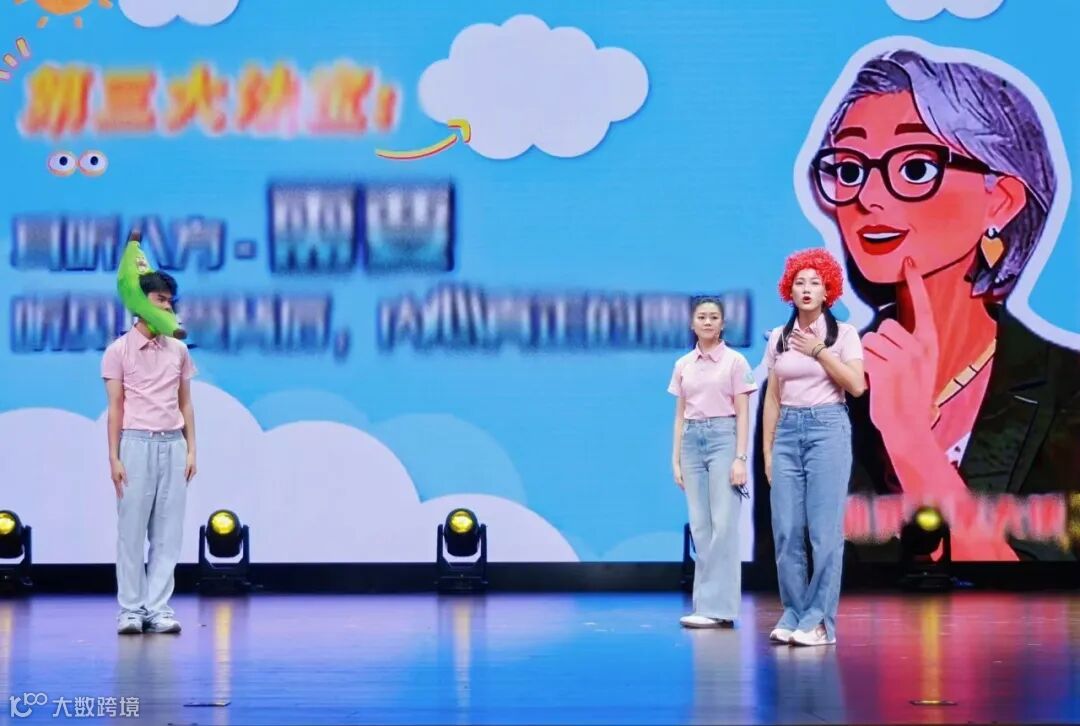 三名队员以“非暴力沟通”为主题,精彩演绎了一段生活沟通困境。宣讲舞台上,他们在“心理关爱大使”的引导下,“时光倒流”重新运用新的沟通方式,与家人、同事和孩子重建和谐关系。舞台设计别出心裁地融合AI数字人物与原创音乐编曲,以生动有趣的形式完整呈现了“暴力沟通-非暴力沟通”这一转变过程。