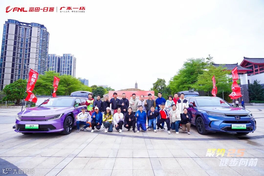 广本一店、富田-日捆工会积极响应广汽商贸工会销售企业与非销售企业结对共建和全员营销的号召,结合广汽商贸25周年司庆主题,3月30日,联合举办了“聚势25 健步向前”健步行活动,约有120余名员工参与。现场布置广汽本田的热门车型展示台,并带来了插电混动版皓影和P7两款明星产品。此外,广本一店设置展车体验区、全员营销任务打卡,并进行现场宣讲与专属政策宣布,引发了员工们的浓厚兴趣,体验P7的科技感、讨论雅阁车型的经典与历史,热情洋溢,仿佛有无尽地探索欲与热爱。