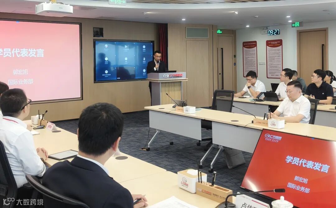 国际业务部郭宏旭作为学员代表发言,郑重承诺高质量完成培训学习,学以致用,开拓创新,争做信念坚定、勇挑重担的践行者。