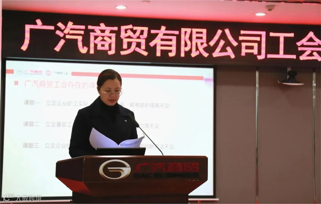 潘美婷代表广汽商贸工会作了题为《立足中心工作、赋能基层实际、凝聚职工合力,为商贸和谐健康高质量发展贡献工会力量》的工作报告,全面总结广汽商贸工会2023年的工作成绩和不足,指明2024年工会工作的主要思路,部署工作重点和要求。