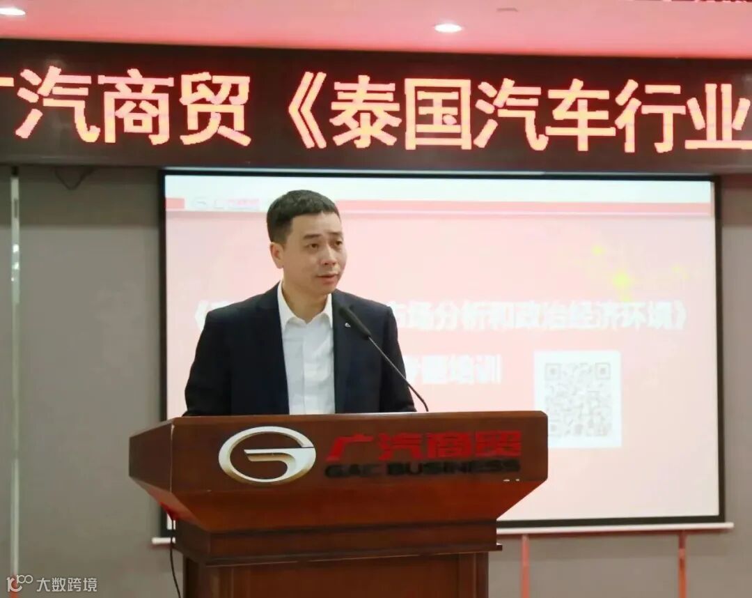 为贯彻广汽集团国际化战略,紧跟广汽集团国际化步伐,探索国际业务发展新模式,10月12日,广汽商贸开展《泰国汽车行业市场分析和政治经济环境》专题培训,广汽商贸在家的领导班子、集团派驻财务总监、本部中层及国际业务相关人员约100人参加。