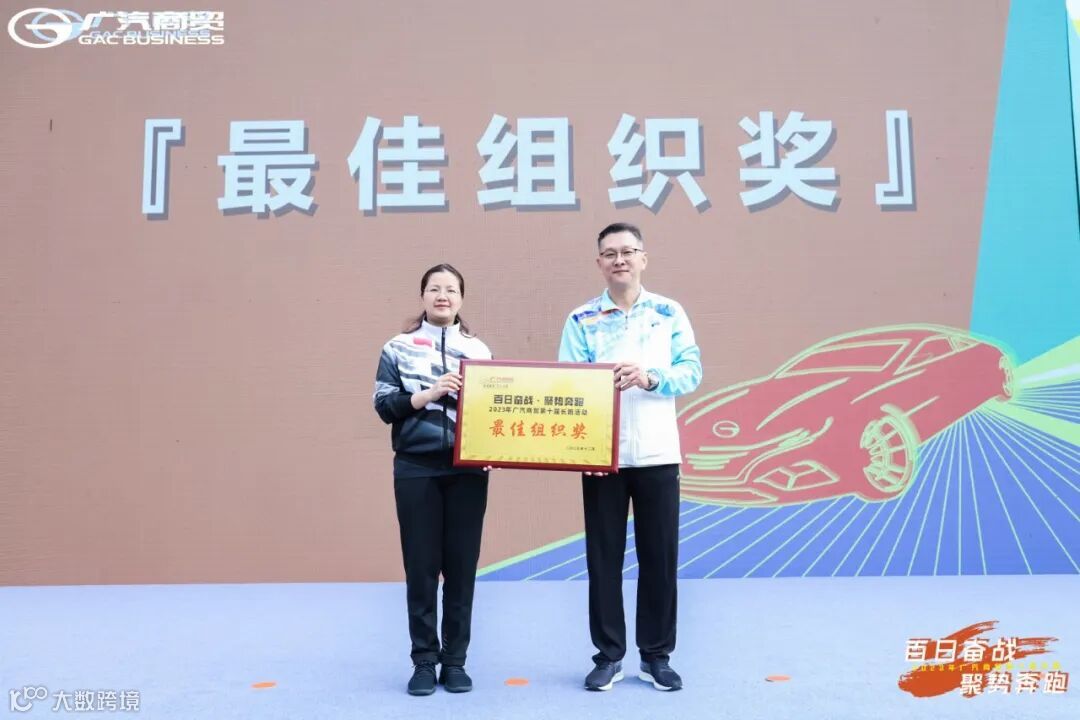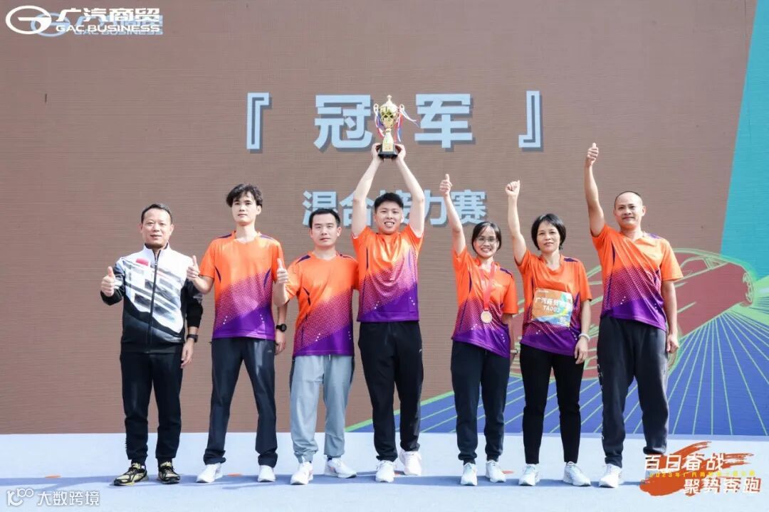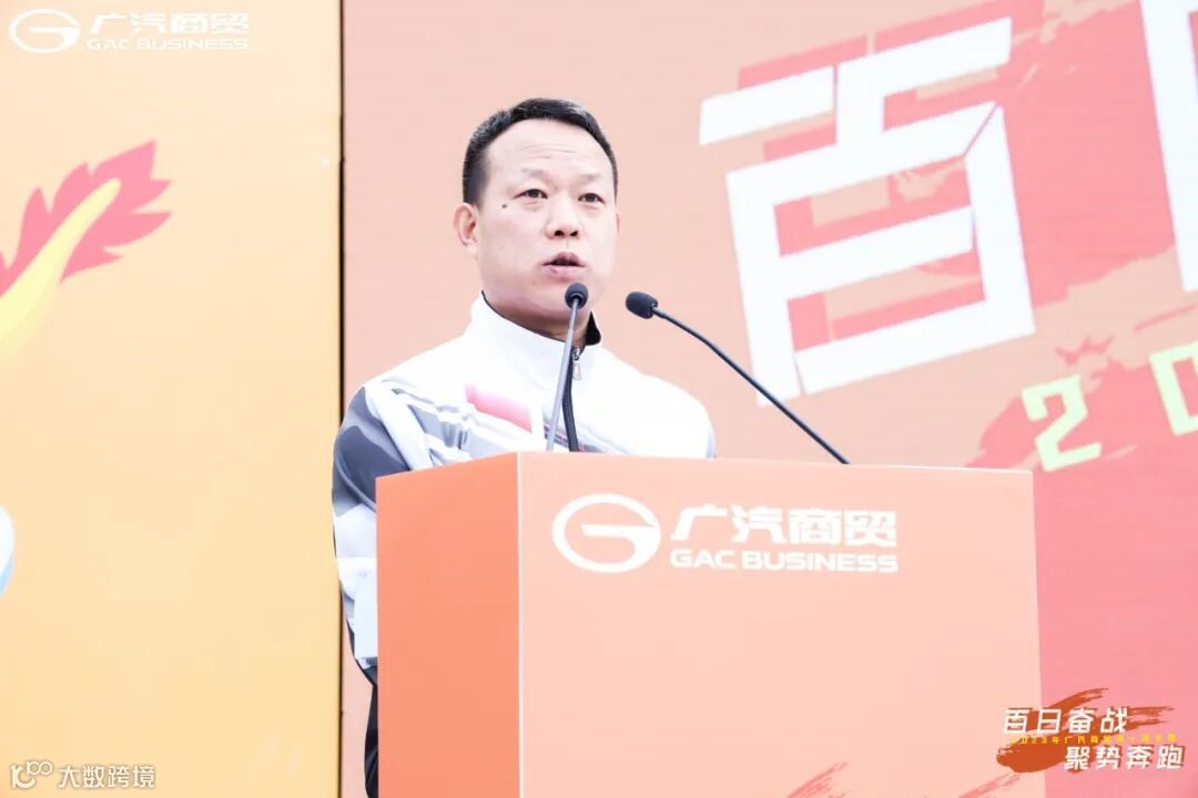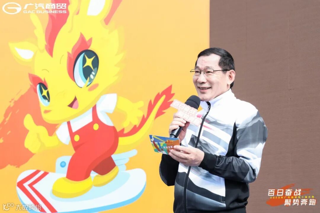 闫建明代表公司领导班子,向所有工作人员及运动员表示感谢和祝贺!他表示,本次活动主题是“百日奋战·聚势奔跑”,犹如广汽商贸人持续奔跑的信念。他号召全体广汽商贸人继续保持这股坚持与韧劲、这份活力与信心,为打赢2023年大战第四季度收官战接续奋斗,为实现“万亿广汽”、“千亿商贸”发展蓝图不懈努力!