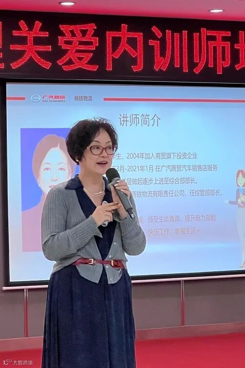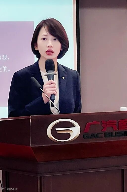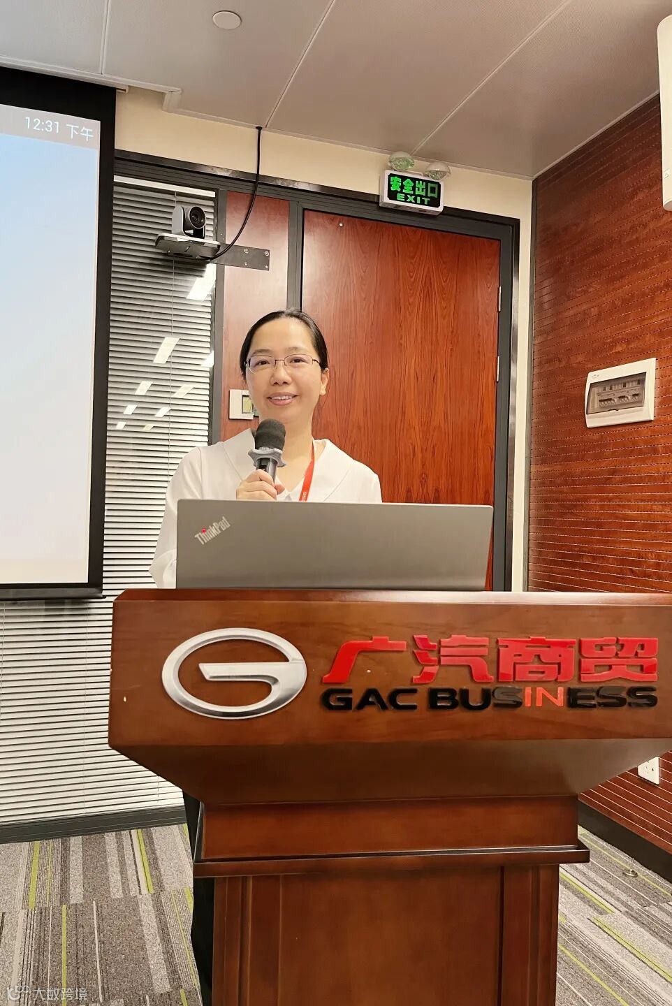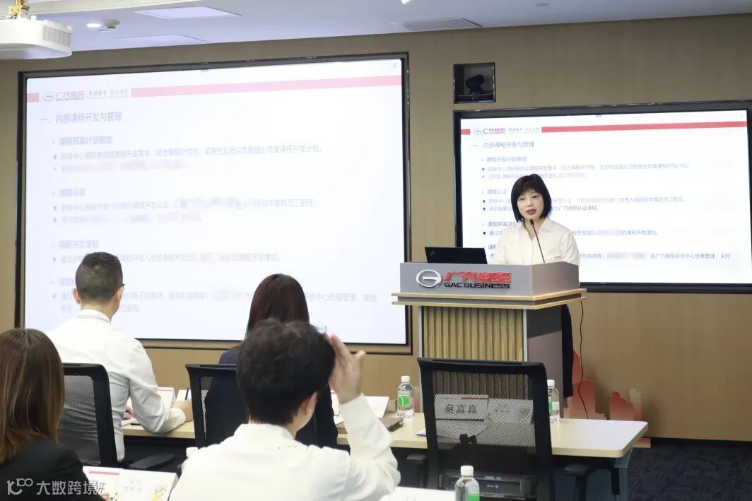 广汽商贸研修中心副主任胡军梅介绍公司课程开发及内部讲师激励与管理措施、现有内部课程情况及本年度课程开发推进计划,鼓励大家参与新课程的内部讲师认证。