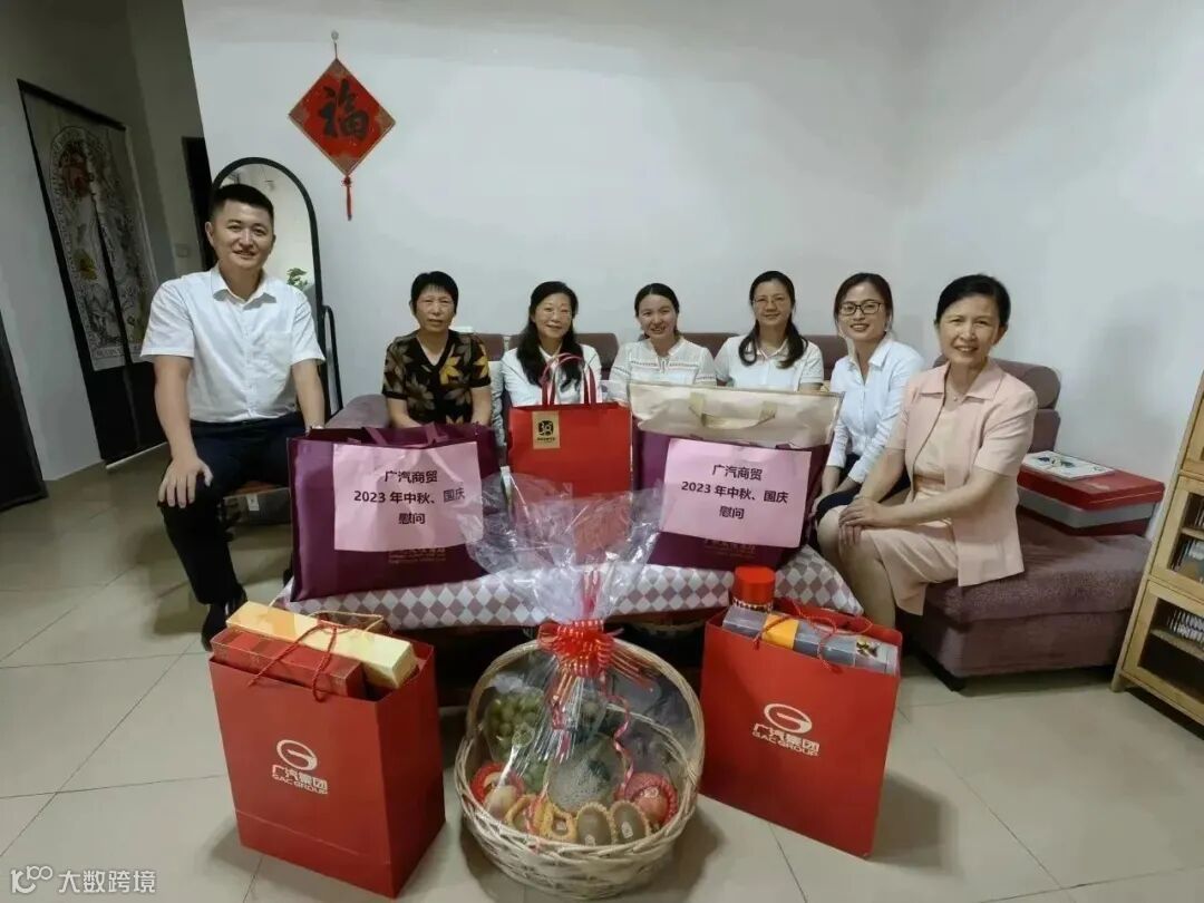 两年的派驻时光,想着念着远在毕节的松伟的,不仅有他的家人,更有广州市、集团及商贸等各级领导、同事。在 2023 年中秋、国庆“双节”即将来临之际,广汽集团工会主席邓蕾、团委书记贾文召及广汽商贸党委副书记、工会主席潘美婷带队来到松伟家,慰问关怀松伟家人。