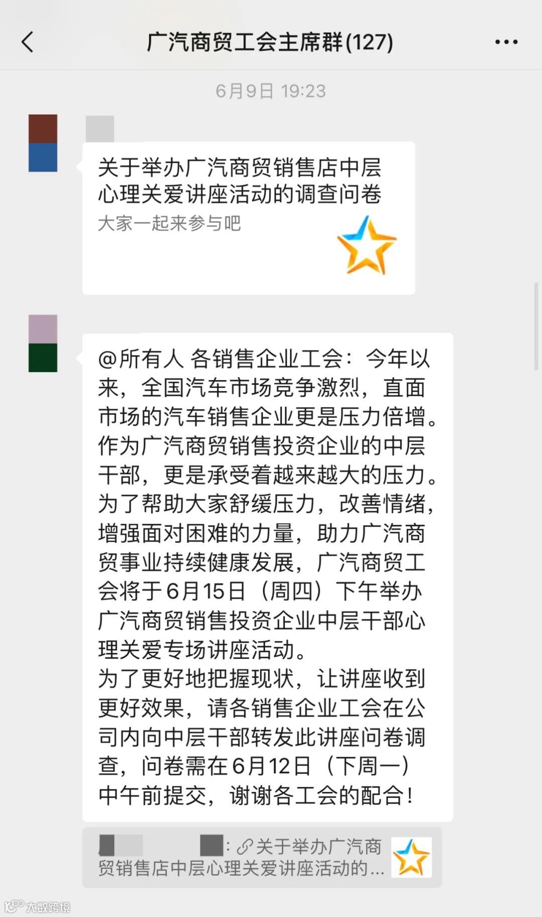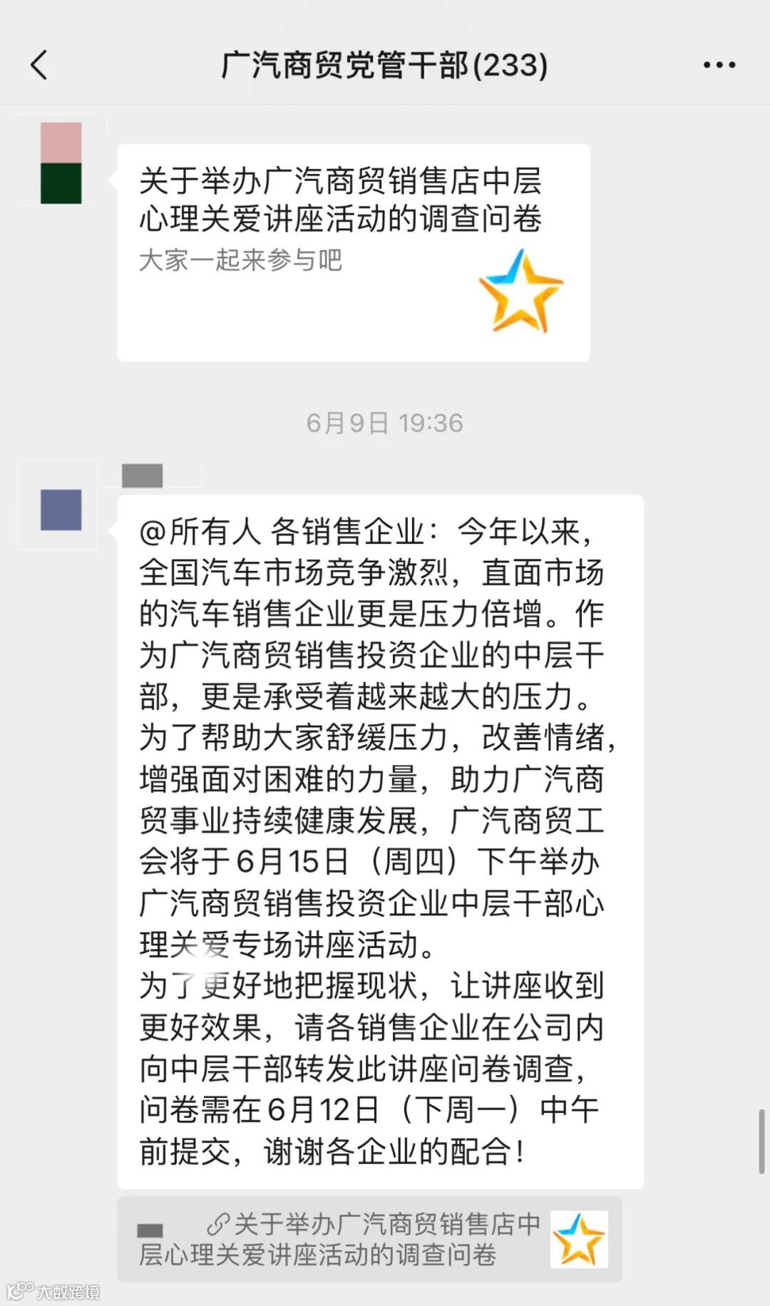 为了确保课程的精准度,广汽商贸工会于今年3月底至5月上旬,以工会工作调研为契机,面向销售领域4个区域26家企业开展了销售店中层干部心理关爱座谈会。通过面对面的方式,倾听一线干部的心声,了解大家的痛点与难点,明确课程主题。
