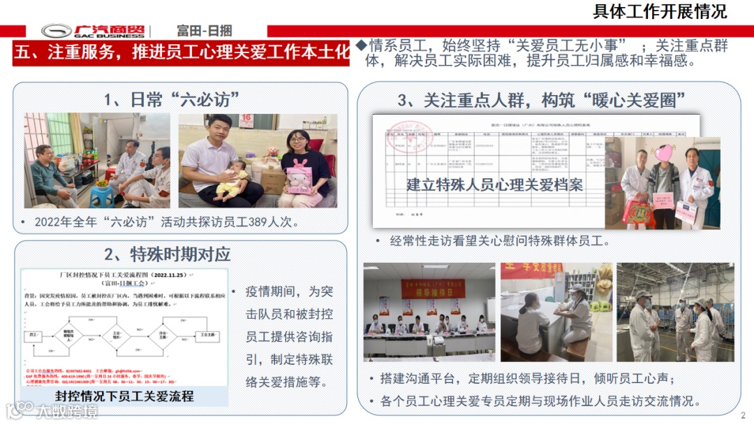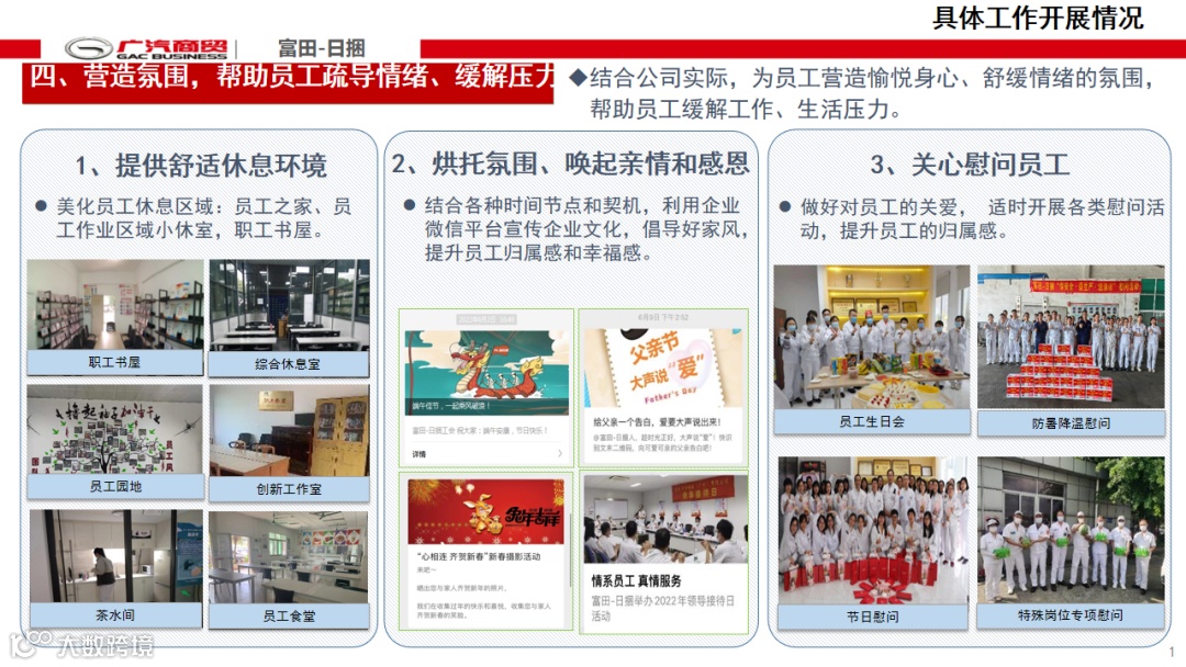 从员工心理关爱组织架构、组织功能宣传、重点人群分类管理等方面进行分享。