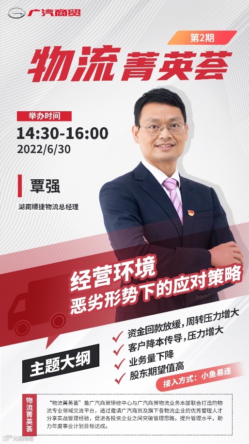 “物流菁英荟”是广汽商贸研修中心与广汽商贸物流业务本部联合打造的物流专业领域交流平台,通过邀请广汽商贸及旗下各物流企业的优秀管理人才分享实战管理经验,促进各投资企业之间突破管理思路,提升管理水平,助力年度事业计划目标达成。