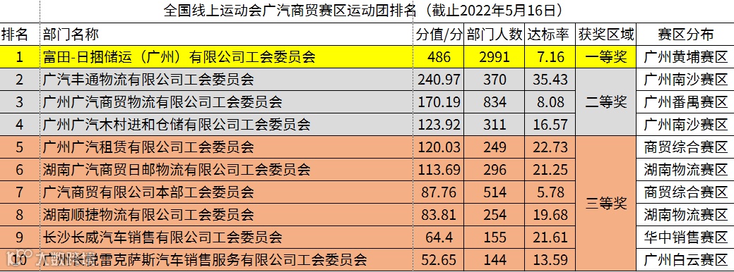 广汽商贸运动团各赛区的比拼还在继续,时间还有1个多月,座次排名还会有怎样的变化,各位同事们努力加油吧!