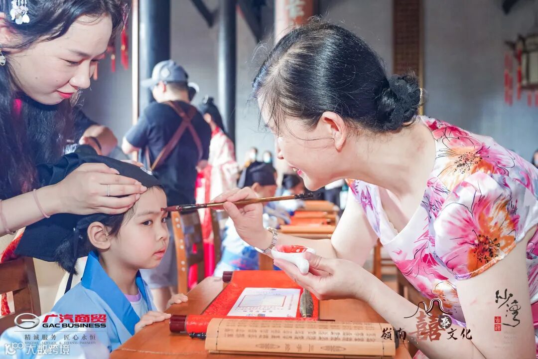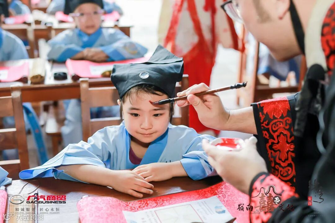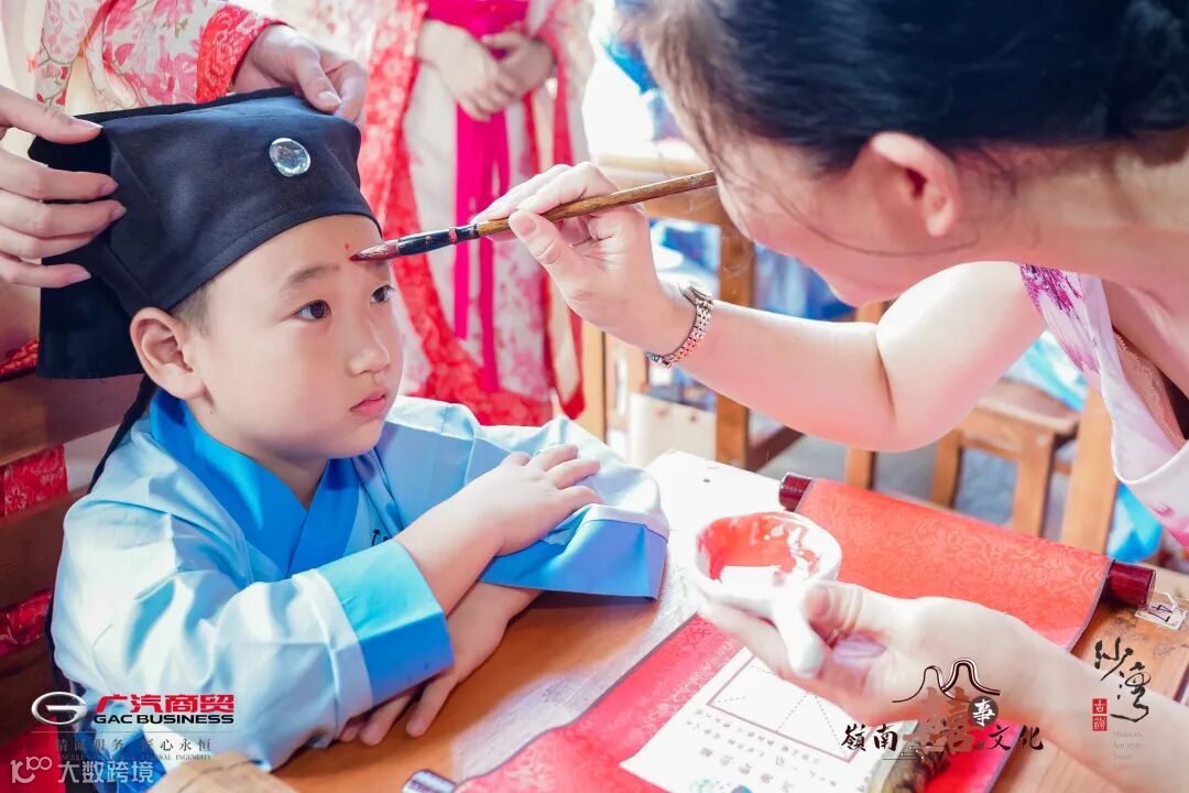 朱砂启智“开天眼”,寓意孩子们开启智慧,耳聪目明、心灵手巧,好读书、读好书、读书好。
