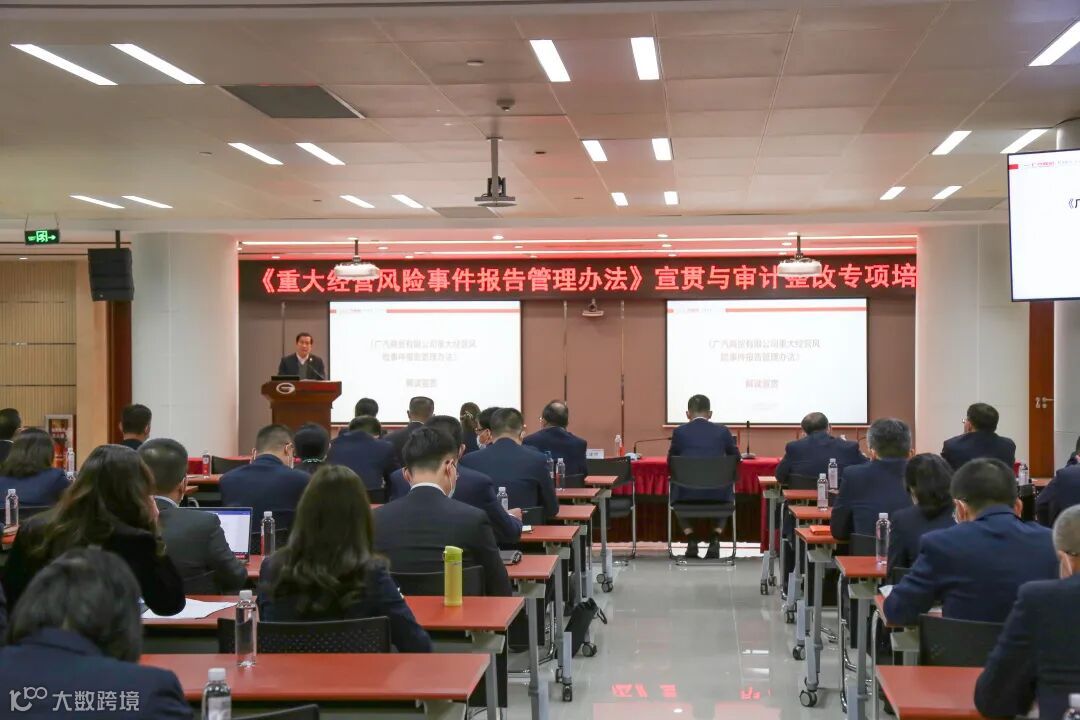1月11日,广汽商贸开展风险防控专题培训,培训采用 “线上+线下”结合的方式进行。广汽商贸党委副书记、总经理闫建明,财务总监梁青,本部中层以上干部、各投资企业负责人、销售区域总监、区域财务总监等共计近200人参加培训。