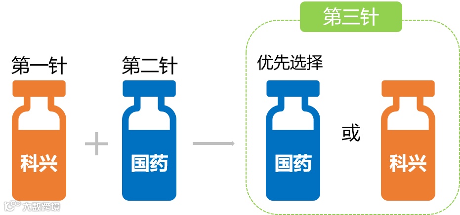 所以,打加强针的时候,优先选择跟前面剂次相同颜色的疫苗就可以了。