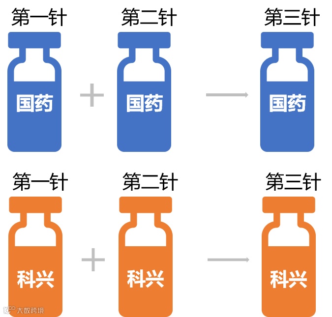 第一针和第二针使用同一种颜色疫苗进行接种: