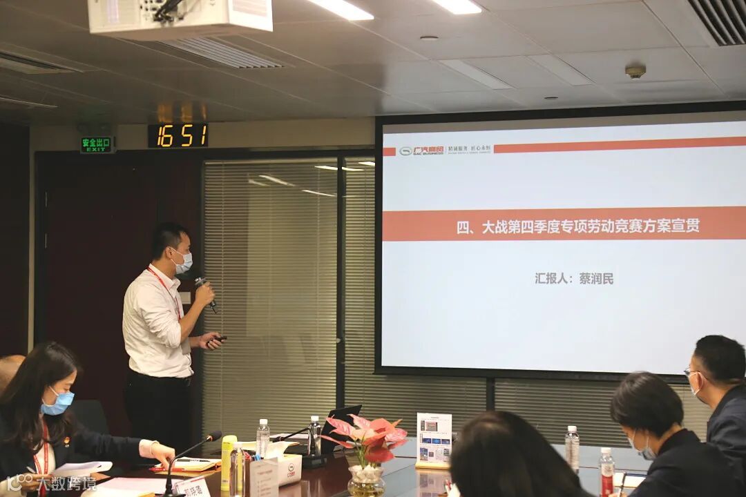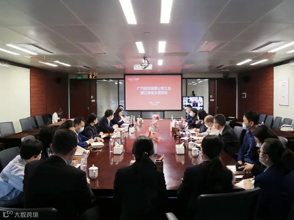 11月23日下午,广汽商贸有限公司(简称广汽商贸)工会召开两委全体会议暨第三季度投资企业工会主席例会,广汽商贸工会主席刘宗新,本部工会有关负责人及两委委员和各投资企业工会主席通过线上线下的方式参加会议。