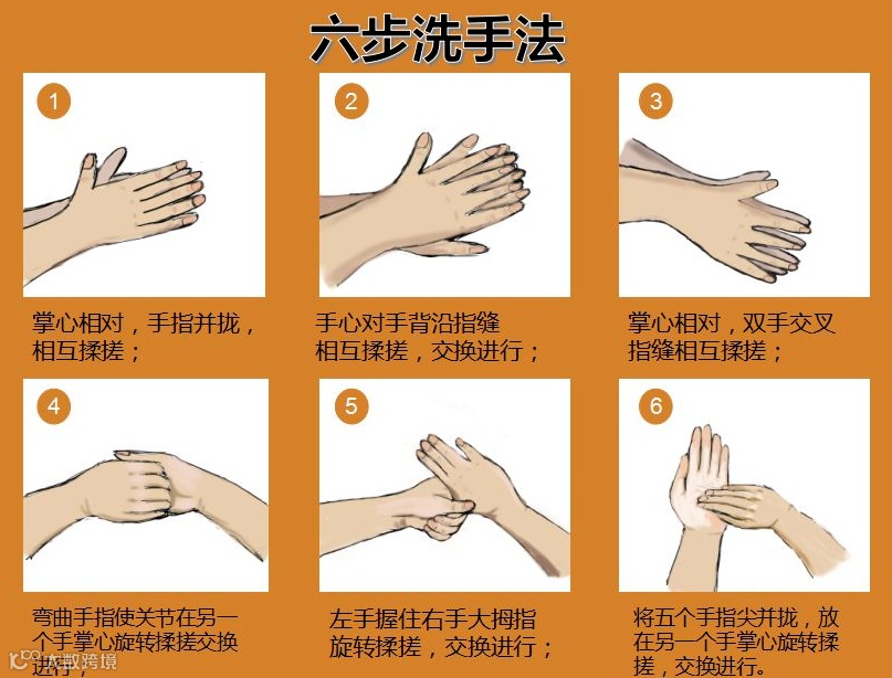 按照六步洗手法,使用洗手液/肥皂/免洗手消毒剂揉搓至少15秒,才能达到清洁手部的作用,减少通过手接触口、眼、鼻、口罩感染病毒的可能。