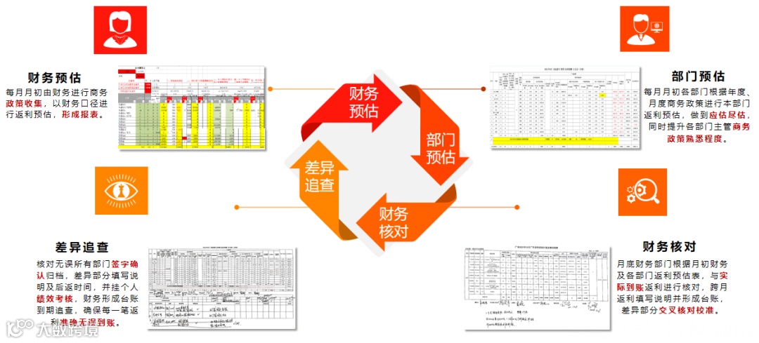 强调提车资金统筹,每周根据提车进度提交提车资金使用计划,由销售经理和品牌总确认计划合理性,财务根据资金情况做好统筹分配;以节省财务费用为导向,调剂各品牌提车融资方式和现金提车比例,将资源利用率最大化;定期进行成果认定及返利监测。