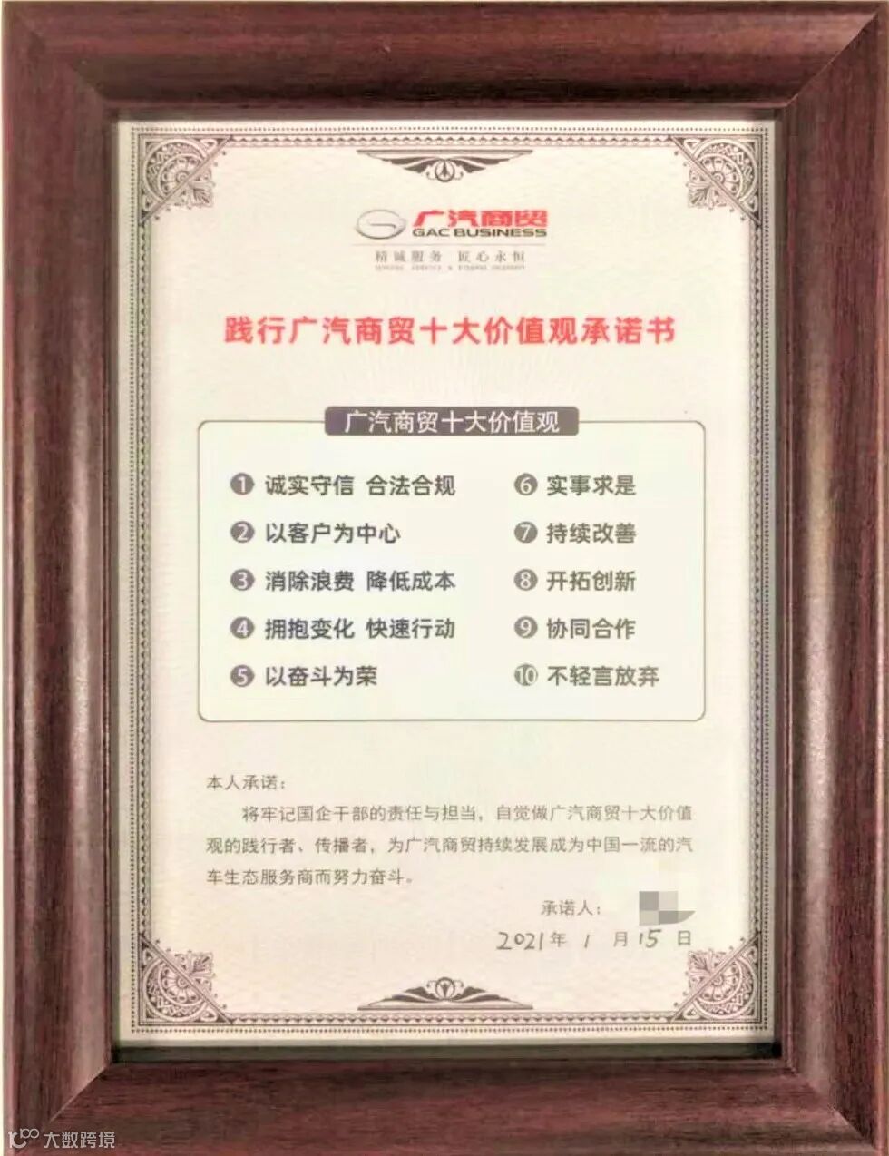 新任干部签订《践行广汽商贸十大价值观承诺书》