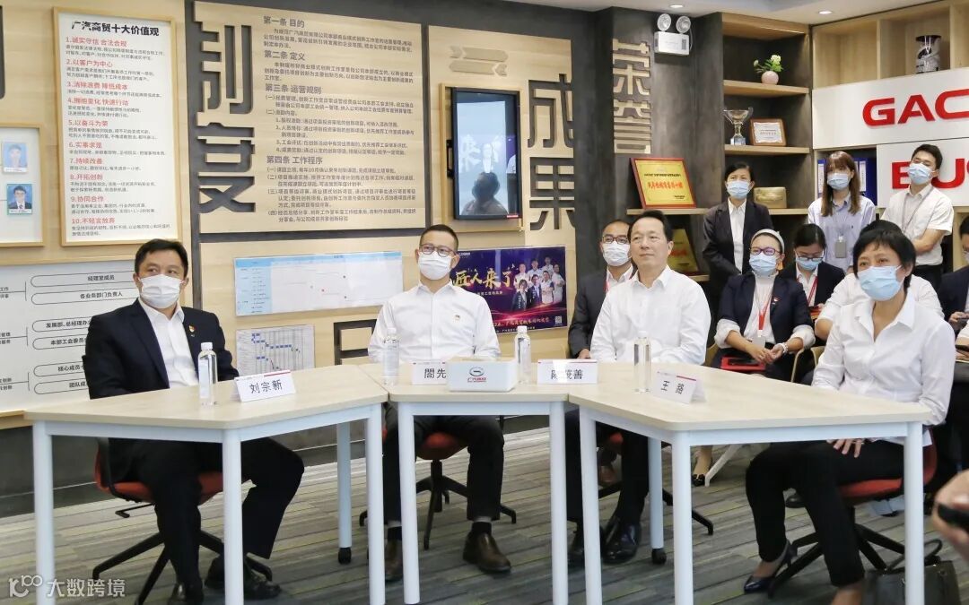 10月9日,为更好地助力企业生产经营,扎扎实实为职工群众办实事,进一步发挥工会组织在围绕中心,服务大局方面的作用,广汽集团工会主席陈茂善一行到广汽商贸开展工作调研。广汽集团工会副主席王路,广汽商贸党委书记、董事长閤先庆,党委副书记、纪委书记、工会主席刘宗新,集团工会办有关负责人及广汽商贸本部有关部室负责人参加调研活动。