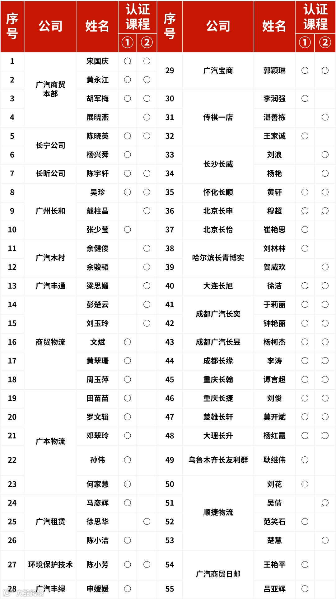 注:课程①为《广汽商贸文化理念与品牌理念》;课程②为《广汽商贸十大价值观》