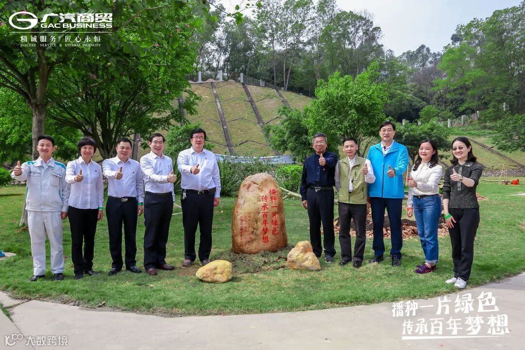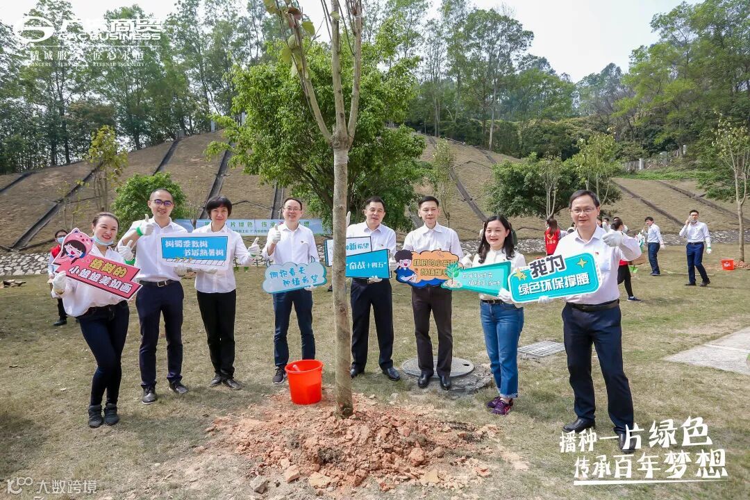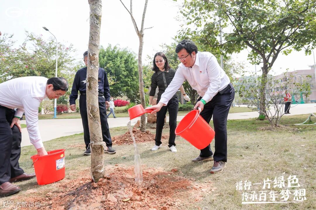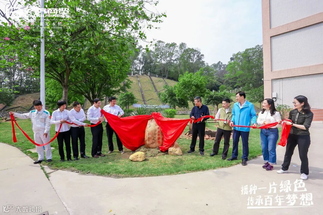“播种一片绿色 传承百年梦想”,参加活动的领导共同为纪念林揭幕。
