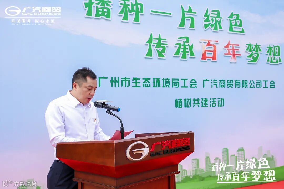 广汽商贸总经理闫建明为植树活动开幕致辞。他表示,广汽商贸和环保技术公司将以绿色发展为己任,持续完善广汽在汽车全产业链生态服务布局,打造“国内领先,优于欧标”的综合性危险废弃物处置示范基地、绿色环保公益的教育基地、环保综合解决方案的科技公司,为广州实现老城市新活力、“四个出新出彩”作出新贡献。
