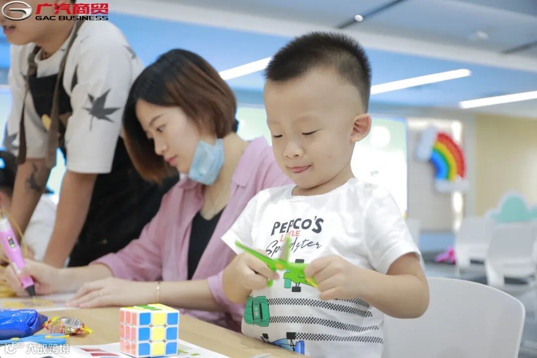 参观过后,在广汽新能源多功能会议厅开展了“携爱·回家”2020年广汽商贸外派干部家庭日亲子活动,各家庭在现场参与了科学实验、魔术课题、3D教室等游戏环节,活动现场洋溢着家庭的温馨与欢乐的气氛,让小家庭收获了意义满满的亲子时光!