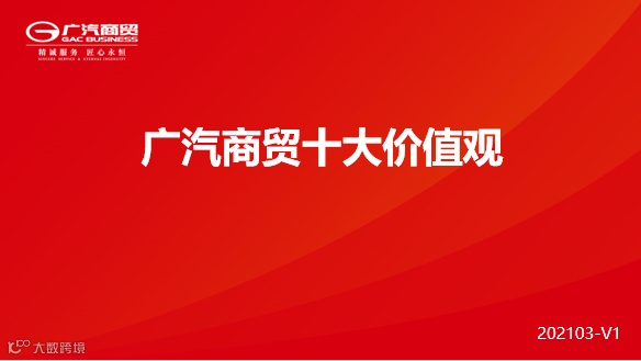 文化是企业的灵魂,是企业发展的驱动力。广汽商贸下属投资企业130多家,员工1.6万多人,遍布全国二十多个省份和直辖市。公司管理跨域广、链条长、难度大,要确保上行下效、工作高效、赋能长效,需要一套统领全局的工作方法,让大家用统一的思维模式思考,用统一的语言沟通,用统一的步调行动。为此,在2021年1月14日的工作会议上,公司正式发布广汽商贸工作方法,包括“八个步骤”和“十大价值观”。广汽商贸工作方法发布后,广汽商贸文化管理体系包括文化理念、品牌理念和工作方法三个部分。