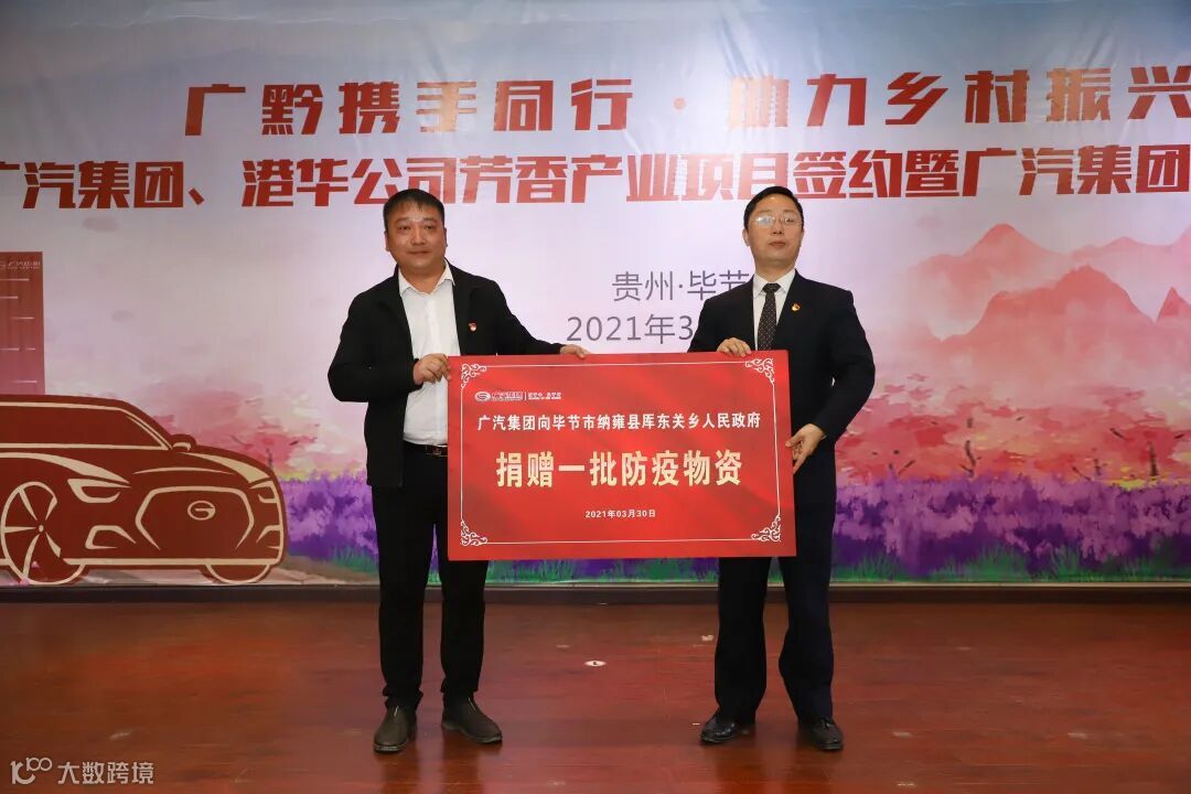 2021年3月30日上午,“广黔携手同行,助力乡村振兴”——广汽集团、港华公司芳香产业项目签约暨广汽集团捐赠活动在贵州省毕节市纳雍县举办。