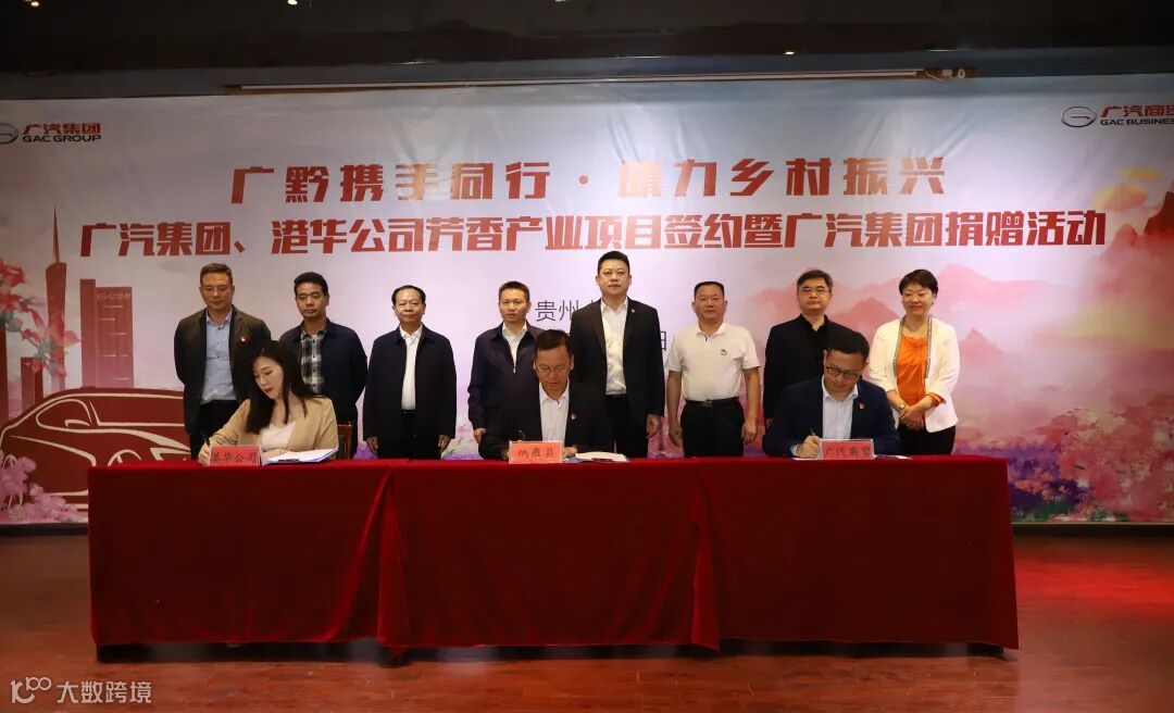 广汽集团旗下商贸板块企业——广汽商贸有限公司与广州港华农业科技有限公司签订合作协议,双方就毕节芳香产业项目达成合作共识,下一步将成立合资公司,进行芳香产品的研发、种植、加工、销售,共同推进“让爱充满车XIANG”项目,助推毕节市乡村振兴和产业帮扶工作向前迈进,助力广州·毕节东西部高质量协同发展。