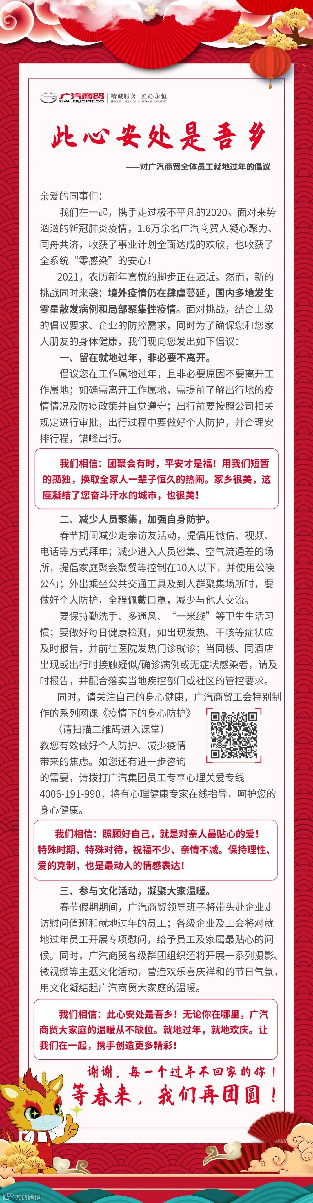 导读:对广汽商贸全体员工就地过年的倡议!